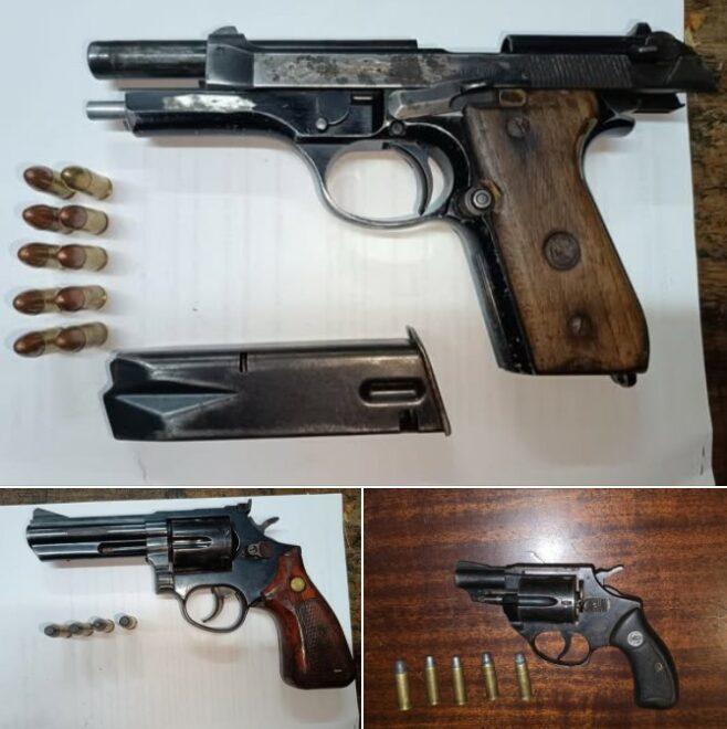 In an unrelated matter, members of the Anti-Gang Unit searched two premises in Eureka Estate, Ravensmead, where they found a .38 Special revolver without a serial number with four rounds of ammunition and a 9mm pistol without a serial number with ten rounds of ammunition at the premises respectively. They arrested two adult males for the illegal possession of firearms and ammunition.